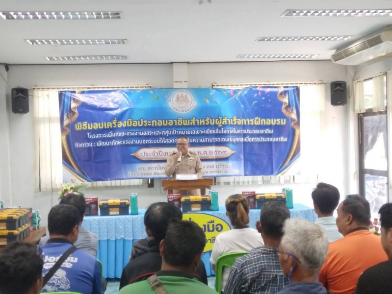 วันที่​ 25​ มีนาคม​ 2569​ :  สถาบันพัฒนาฝีมือแรงงาน​ 37 บุรีรัมย์​ จัดพิธีมอบเครื่องมือประกอบอาชีพสำหรับผู้สำเร็จการฝึกอบรม​ภายใต้โครงการเพิ่มทักษะแรงงานอิสระและกลุ่มเป้าหมายเฉพาะ​ เพื่อเพิ่มโอกาสในการประกอบอาชีพ​ ประจำปีงบประมาณ​พ.ศ.​ 2569​ ณ​ ที่ทำการองค์การบริหารส่วนตำบลหินโคน​ ​โดยมีท่าน​ พันจ่าโททวี​ พิมพ์​อุบล​ นายอำเภอลำปลายมาศ​ นายโกเศียร​ นนทวี​ ผู้ช่วยผู้อำนวยการธนาคารออมสิน​ ภาค​12​ นายสำเภา​ วิเศษ​นคร​ นายกองค์​การบริหาร​ส่วนต​ำ​บล​หิน​โคน​ และ​ นางวาสิษฐี​ ระจิตดำรง ผู้อำนวยการสถาบันพัฒนาฝีมือแรงงาน​ 37​ บุรีรัมย์​ เป็นผู้มอบวุฒิบัตร​และเครื่องมือให้แก่ผู้ผ่านการฝึกอบรมตำบลหินโคน
