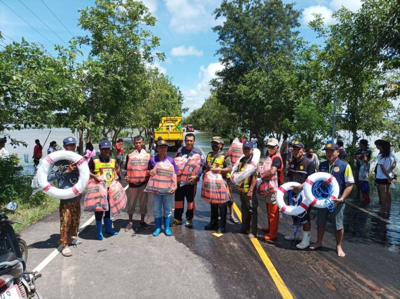 อบต.หินโคน นำโดย นายก รองนายก ปลัด รองปลัด อบต. พนักงานเจ้าหน้าที่ ช่วยเหลือผู้ประสบภัยน้ำท่วมภายในตำบลหินโคน ประจำปี 2565